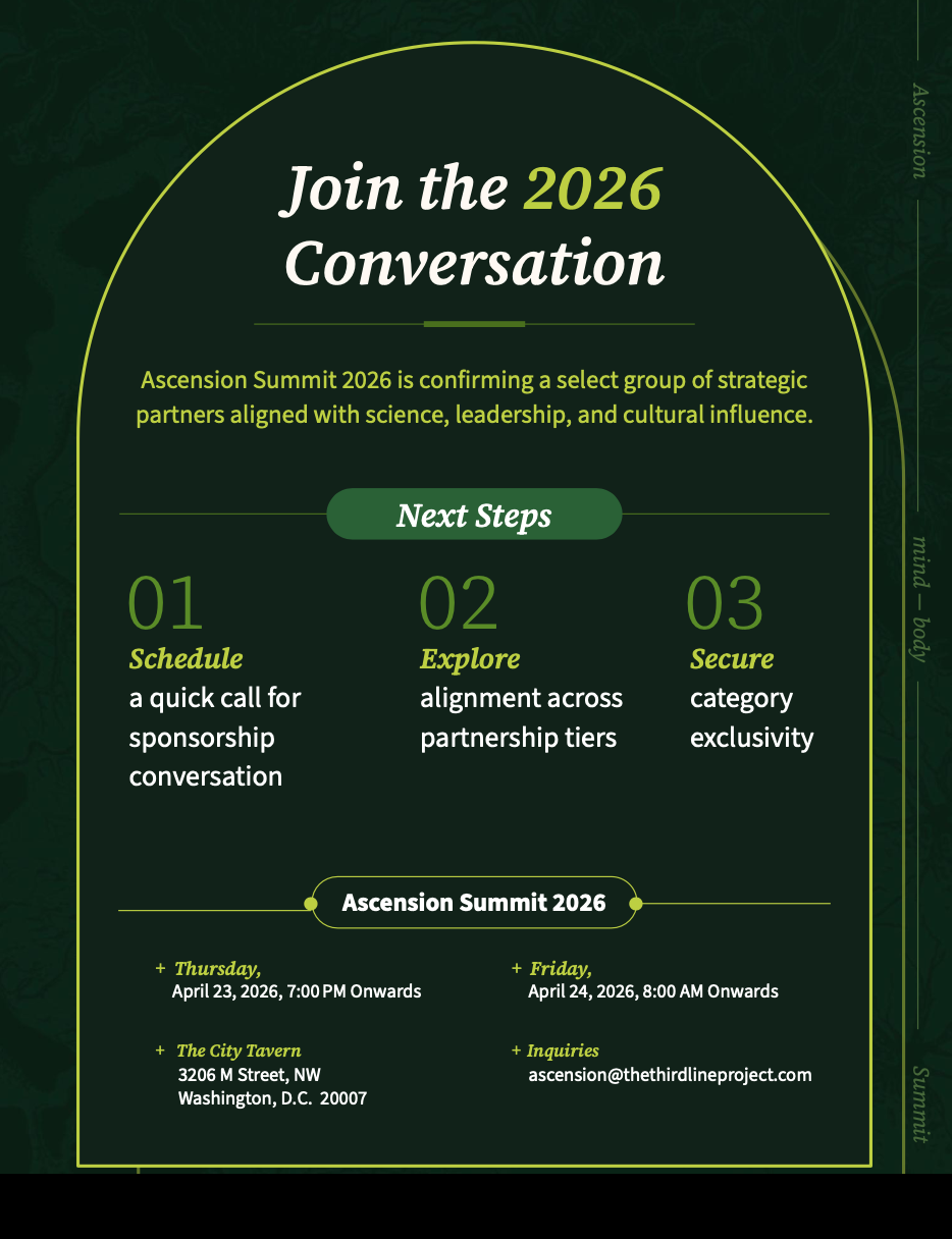 Partnership opportunities begin at $5,000 and include integrated brand presence throughout the summit, with immersive activations featured within the Longevity Lounge.